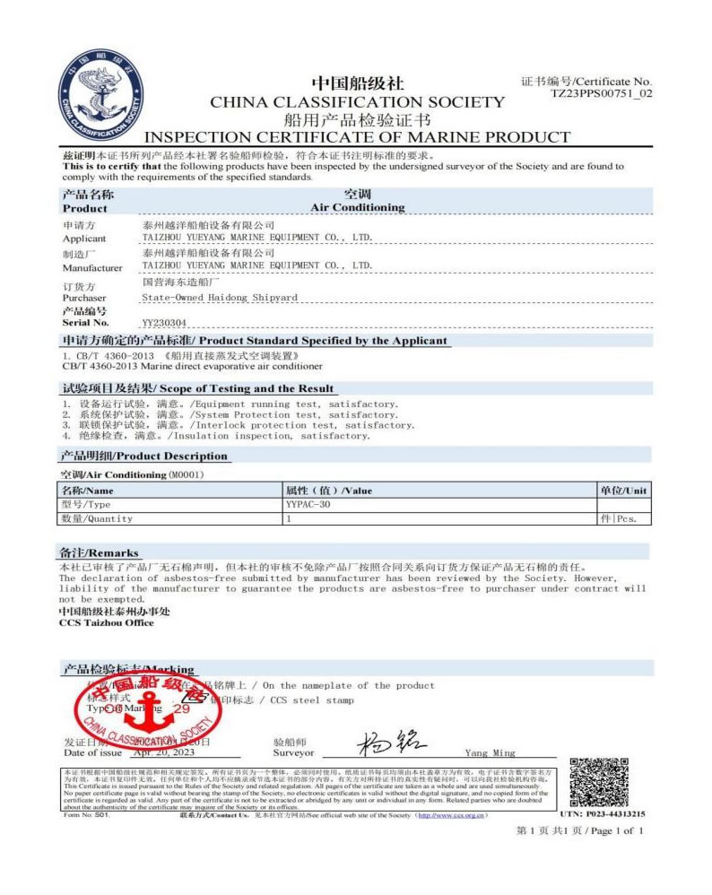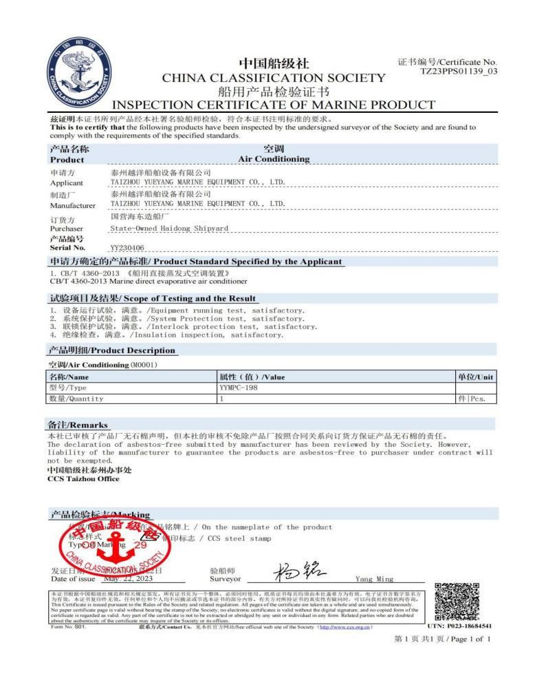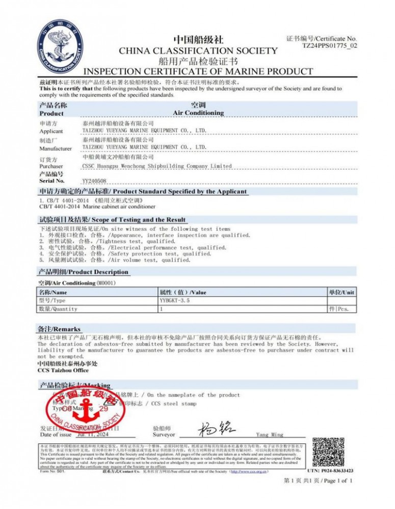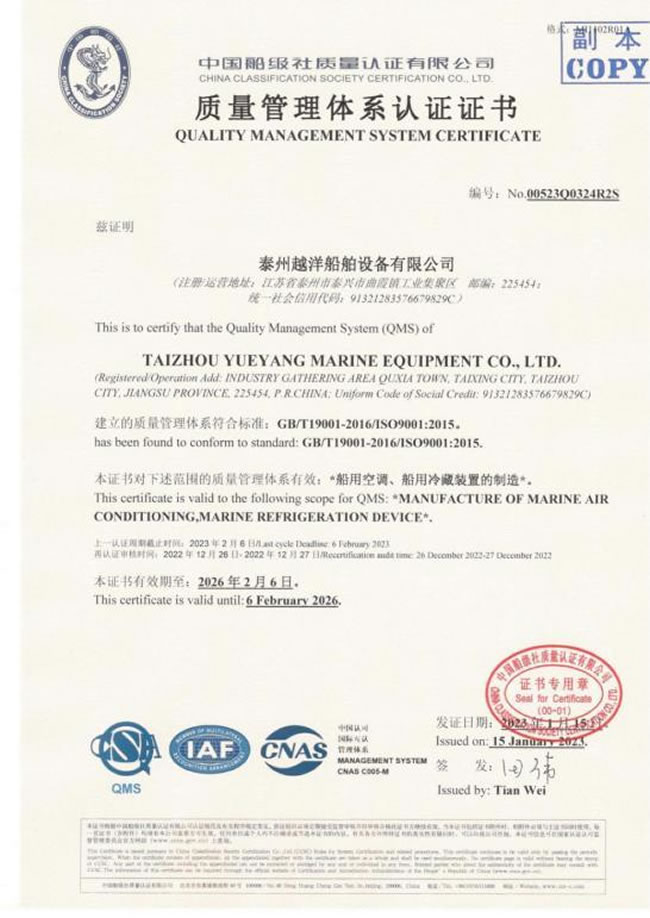 泰州越洋船舶設備有限公司多年專業(yè)從事艦船用空調、冷藏、冷凍設備、冷庫系統,通風安裝系統(空調通風,機艙通風,自然通風)等。本公司地處美麗的曲霞鎮工業(yè)園區,固定資產1200萬人民幣,占地面積1.5萬平方米左右,公司產品廣泛用于海軍驅逐艦護衛(wèi)艦,補給艦,海警,醫(yī)療船,科考船等,如:“東方紅2“,“海大號”,“向陽紅06”,“向陽紅09”,“向陽紅03”,“大洋1號”,“東方紅3”,“向陽紅18”,“向陽紅52”,地質級科考船“業(yè)冶錚”號海洋平臺。